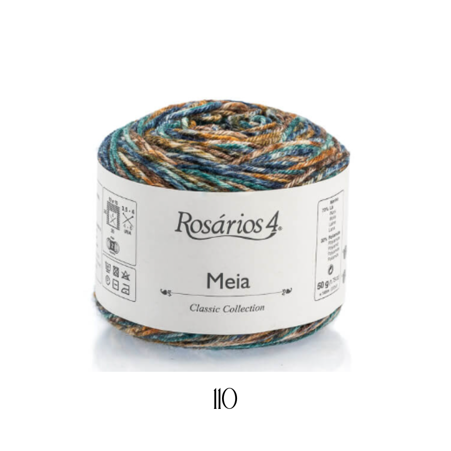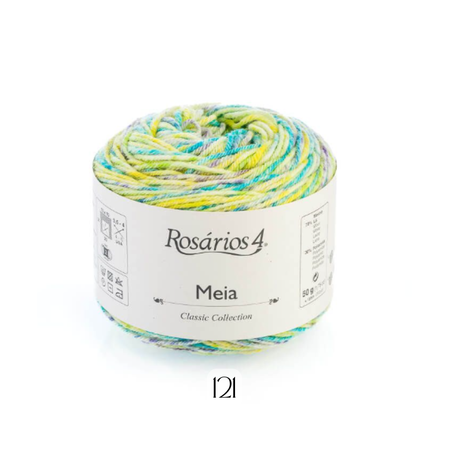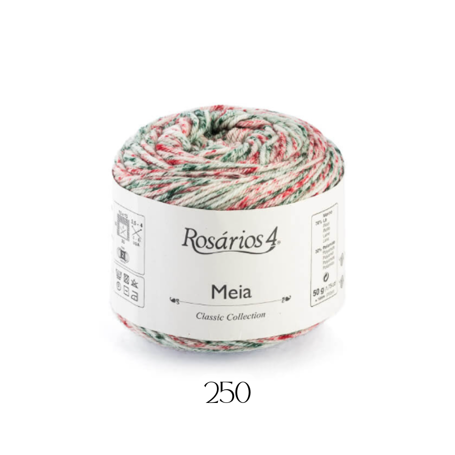 Rosarios4 dzija “Meia” apvieno merino vilnu ar poliamīdu, kā rezultātā tiek iegūts īpašs materiāls zeķu adīšanai. Vilna piedāvā mīkstu un siltu tekstūru, bet poliamīdam ir elastības pieskāriens, kas ļaus jūsu zeķēm pielāgoties jūsu pēdu formai ar absolūtu komfortu. Un, protams, vari izmantot arī citiem rudens un ziemas projektiem!